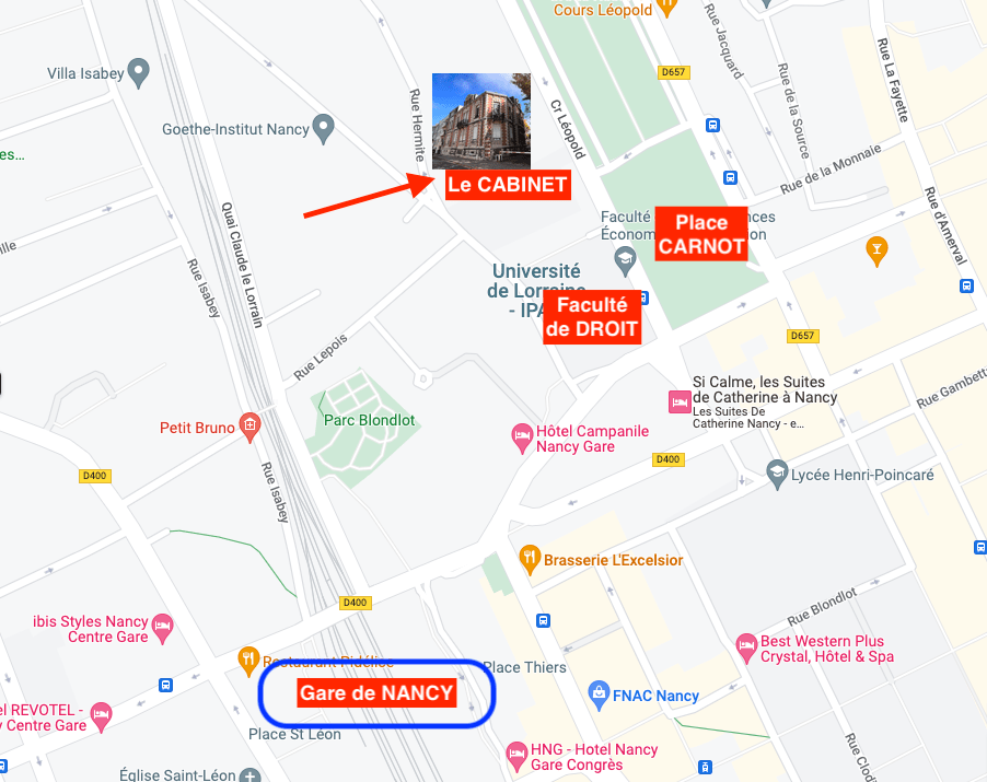 Il est situé au 4 Rue HERMITE à NANCY (54000) à côté du Centre BPALC CENTRE AFFAIRES HERMITE et non loin de la Gare de Nancy.